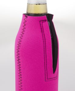 Made out of 5 mm neoprene, glued and stiched seams, glued in base, zip closure. Made to fit one 375ml beer bottle. Available in full colour, multi colour or single colour print.